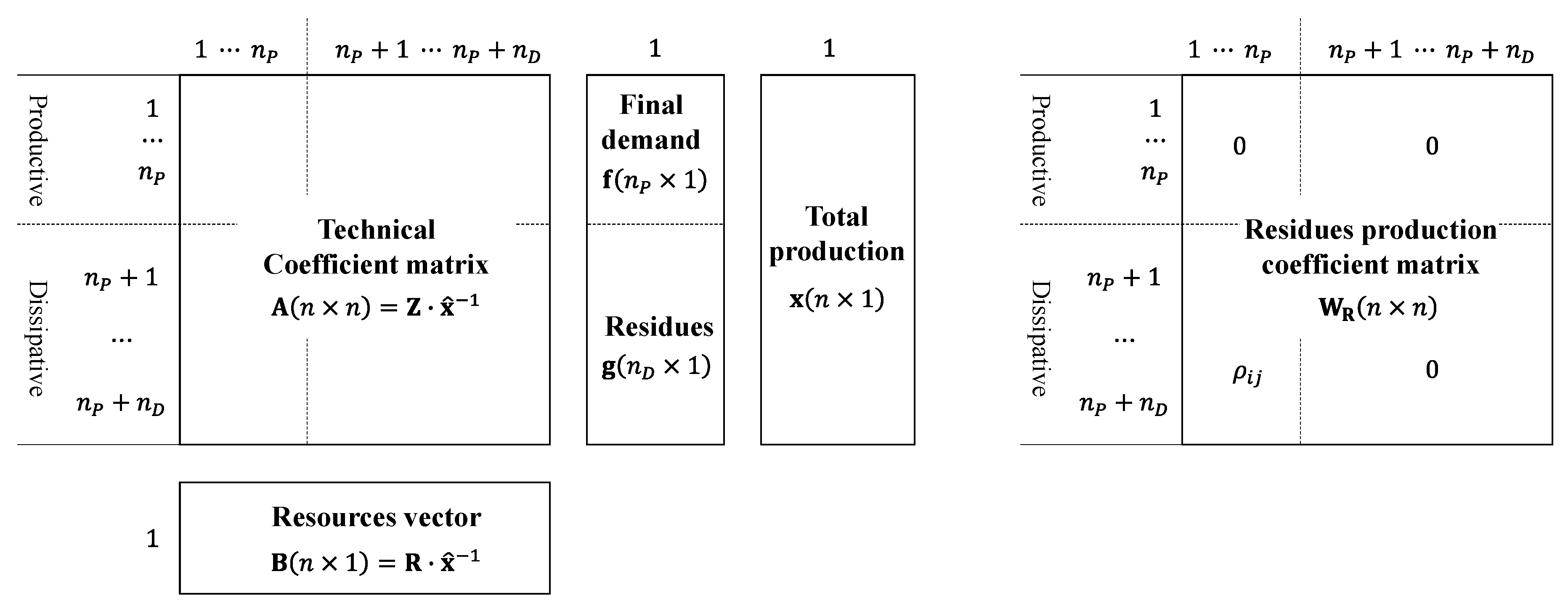 A Residues production coefficients matrix can be thus defined to collect the residues production coefficients , defined in matrix form by relation Equation (7),