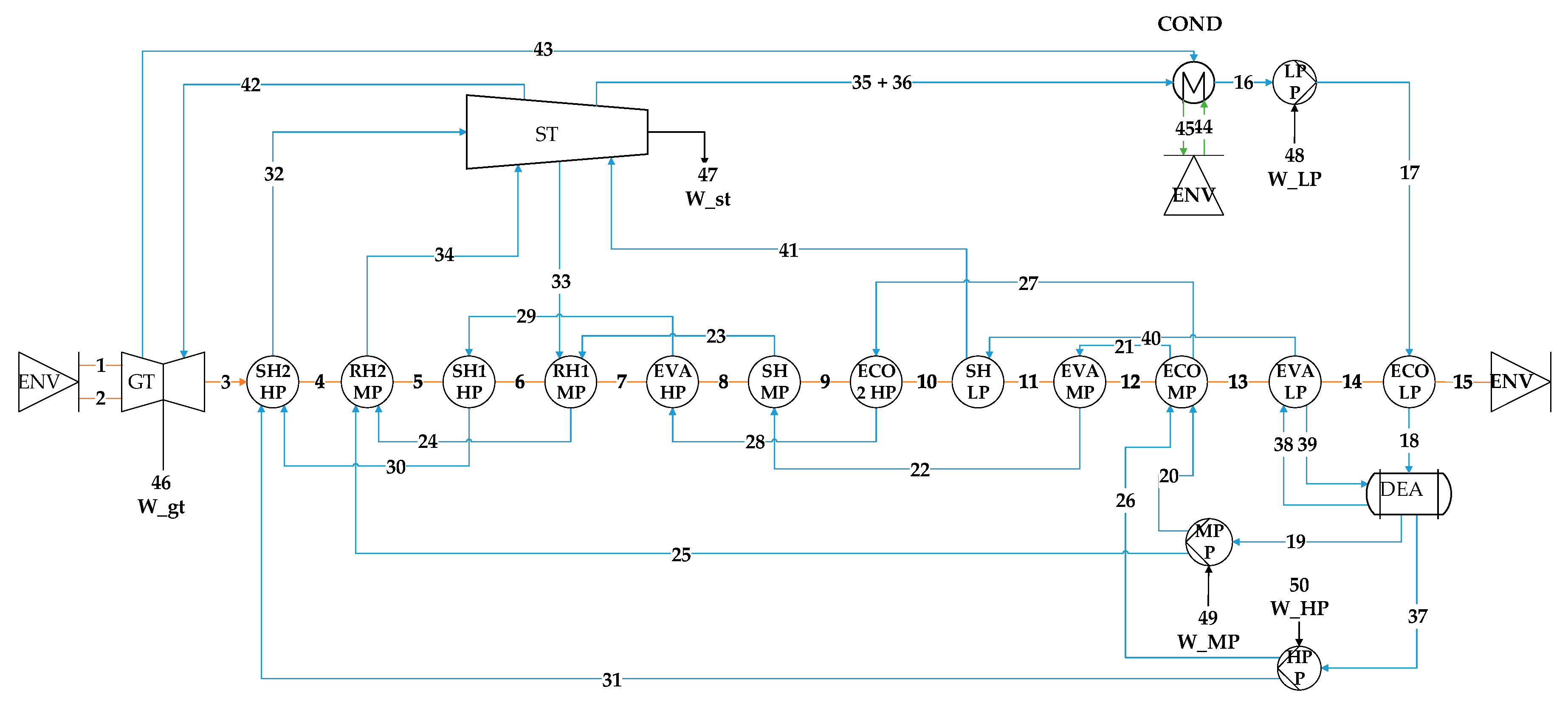 - Rovira, A.; Sánchez, C.; Muñoz, M.; Valdés, M.; Durán, M.D. Thermoeconomic optimisation of heat recovery steam generators of combined cycle gas turbine power plants considering off-design operation. Energy Convers. Manag. 2011, 52, 1840–1849. [Google Scholar] [CrossRef]