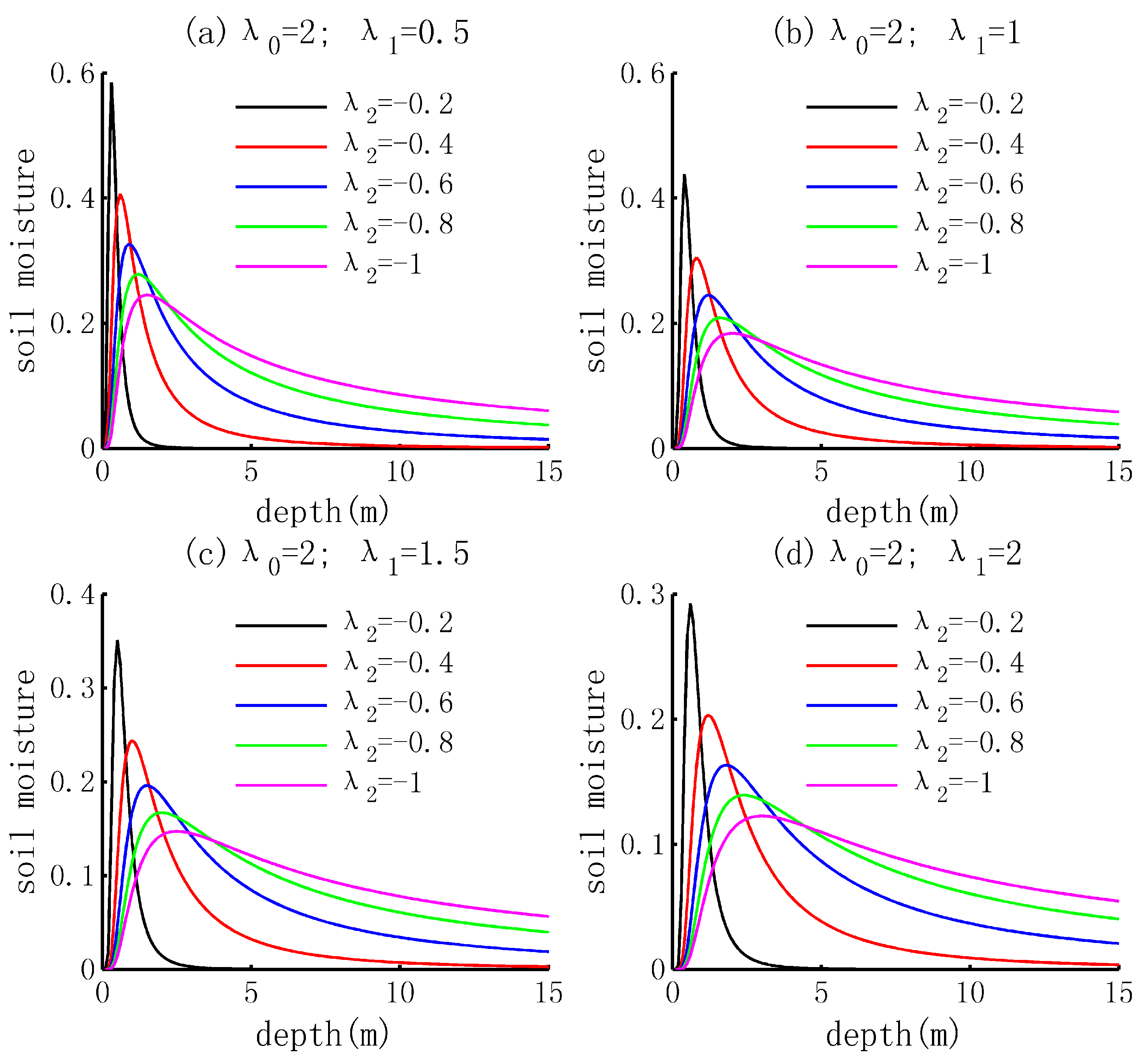 where μz and νz and are the arithmetic mean and geometric mean of soil moisture distribution, respectively. Then we construct the Lagrange function L with the constraints of (11), (14) and (15):