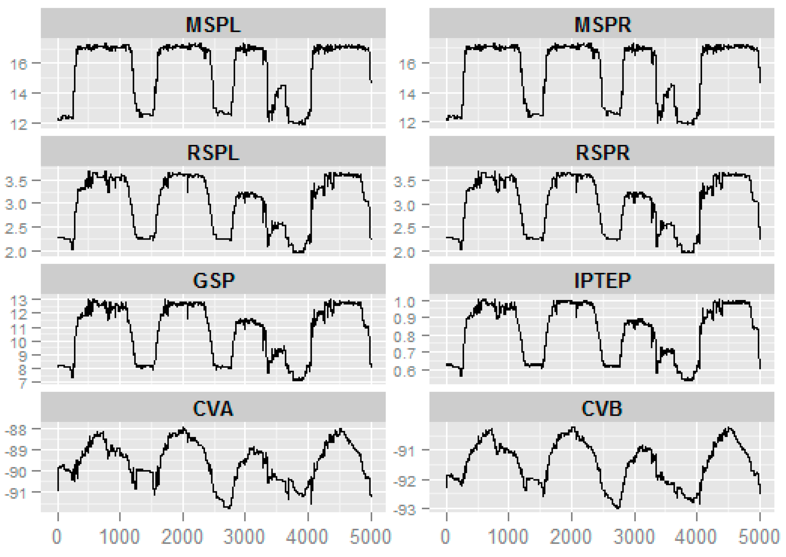 The time series of eight monitored parameters from the power system DCS.