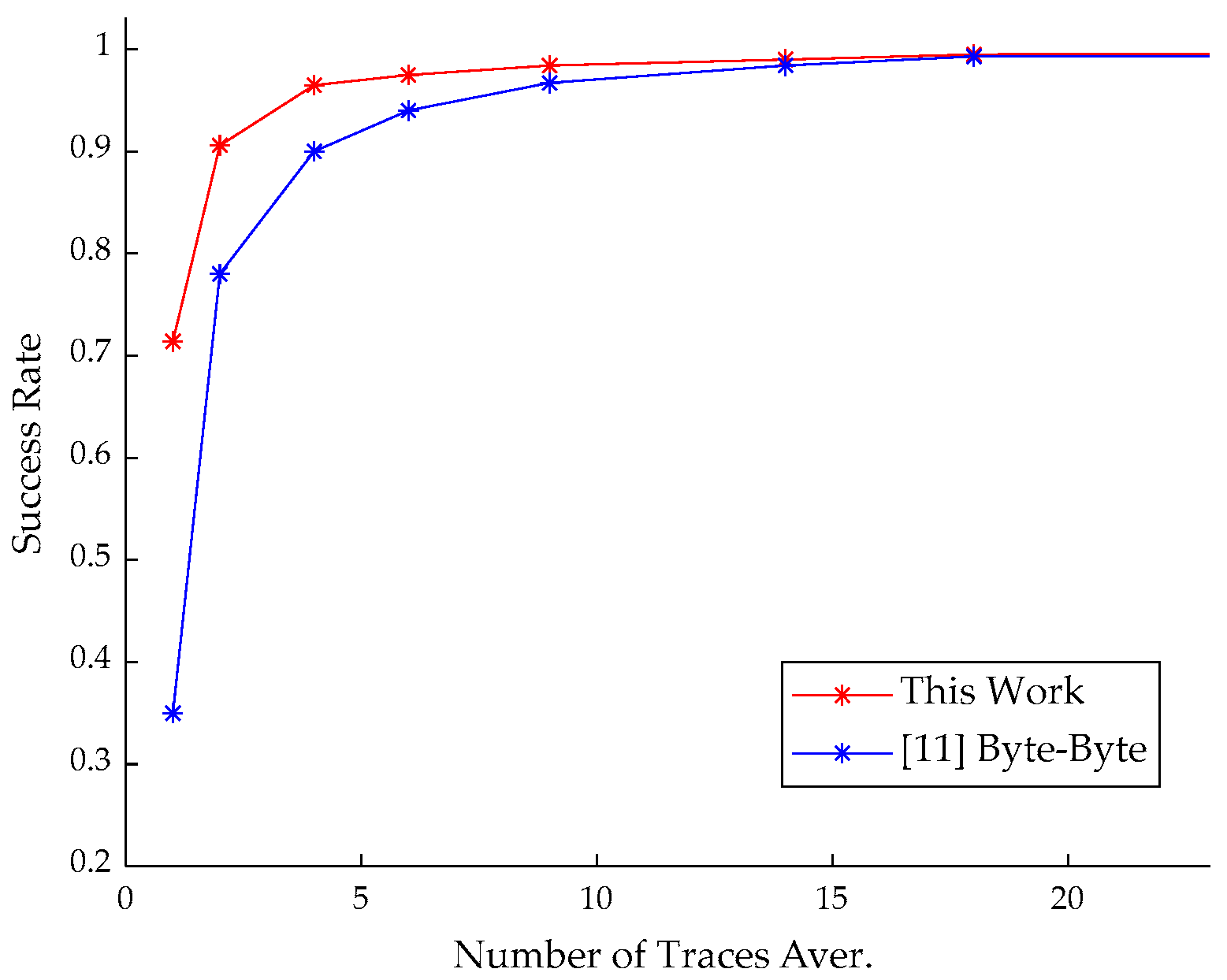 | Target | Method | Number of Traces in Preprocessing | Number of Traces for Attacking | Sum of Traces | Success Rate (Best Case) | |