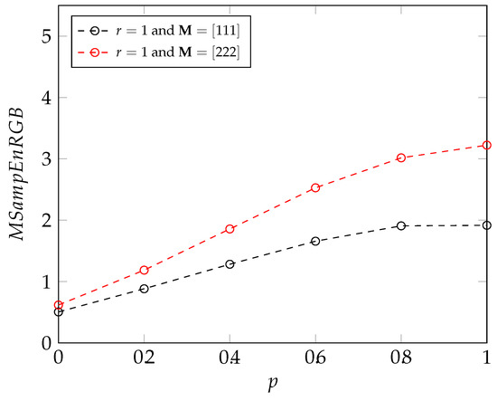 The results obtained are as expected: an increase in the entropy value is associated with an increase in the irregularity of the image, that is induced by an increasing value of p (see Figure 3). With these parameters, the results show that the new entropy measures can be used to properly assess the degree of irregularity of an image. We can also deduce from these results that, for the MIX process, M gives us a more accurate estimation of the irregularity of an image than M , since M leads to better differentiation between images of two consecutive irregularity than M .