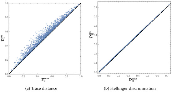 - Evaluate between the two classical probability distributions resulting from taking a measurement over the quantum system in either state or .