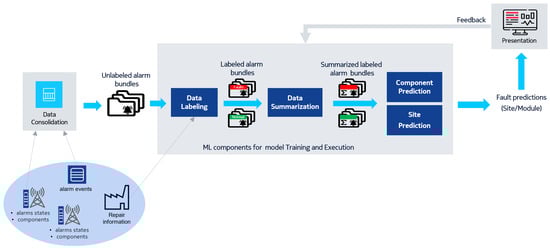 - We developed a layered fault prediction scheme for fault diagnosis which decomposes the decision-making into two steps: site-level and component-level prediction. This reduces the problem of data imbalancing and allows for the application of ML methods to alarm logs data.