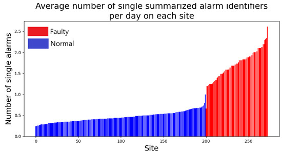 Finally, note that, for the component-level predictions, only the bundles of the faulty component (preceding the replacement) were taken as fault samples, whereas those associated with the other, healthy components on the same site were considered as normal. In contrast, for site-level model training, the bundles were not defined component-wise and all alarms belonging to a given site were used to build the model.