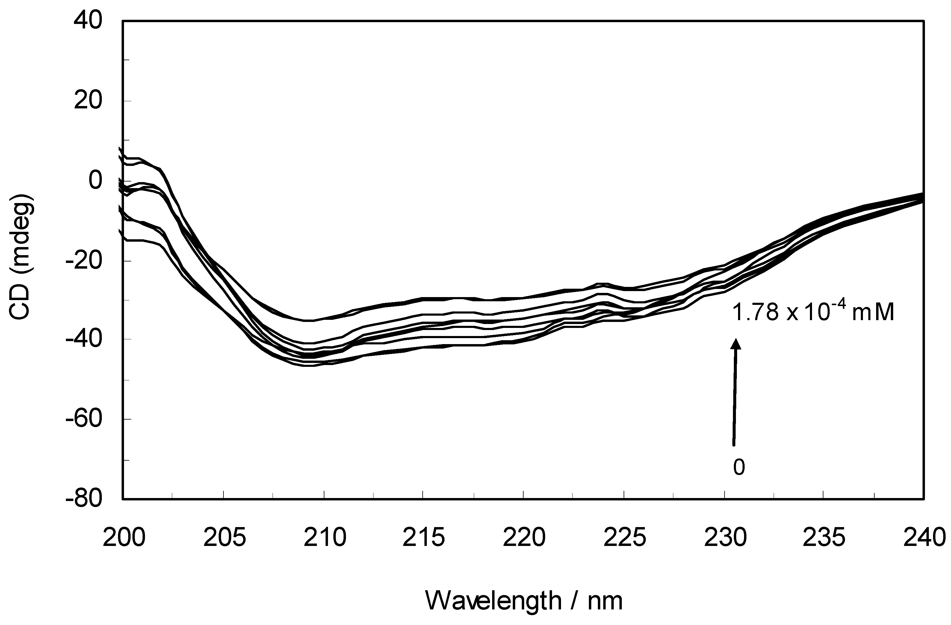 The decrease of the intensity of peaks 1 and 2 in combination with the results from the synchronous fluorescence spectroscopy displayed that the binding of ROP and ASA to hTf induced the slight unfolding of the polypeptides of hTf, which led to a conformational change of hTf that increased the exposure of some hydrophobic regions that were previously buried. All these phenomena obtained from analyzing the two peaks indicated that the binding of ROP and ASA to hTf and the formation of binary and ternary complexes induced certain changes in the micro-environment and conformation of hTf.