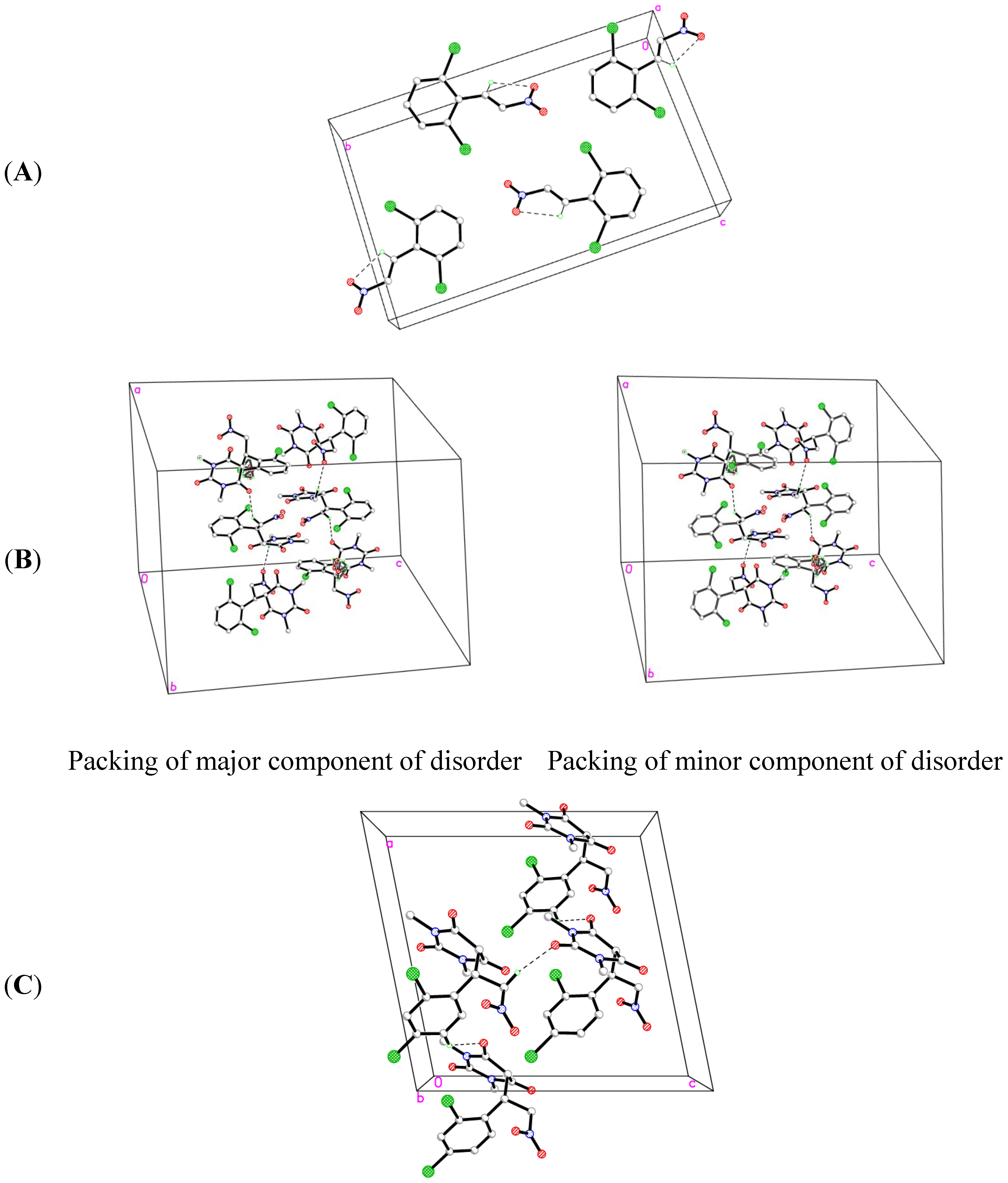 Crystal packings of (A) 1a, (B) 2a and (C) 2b.