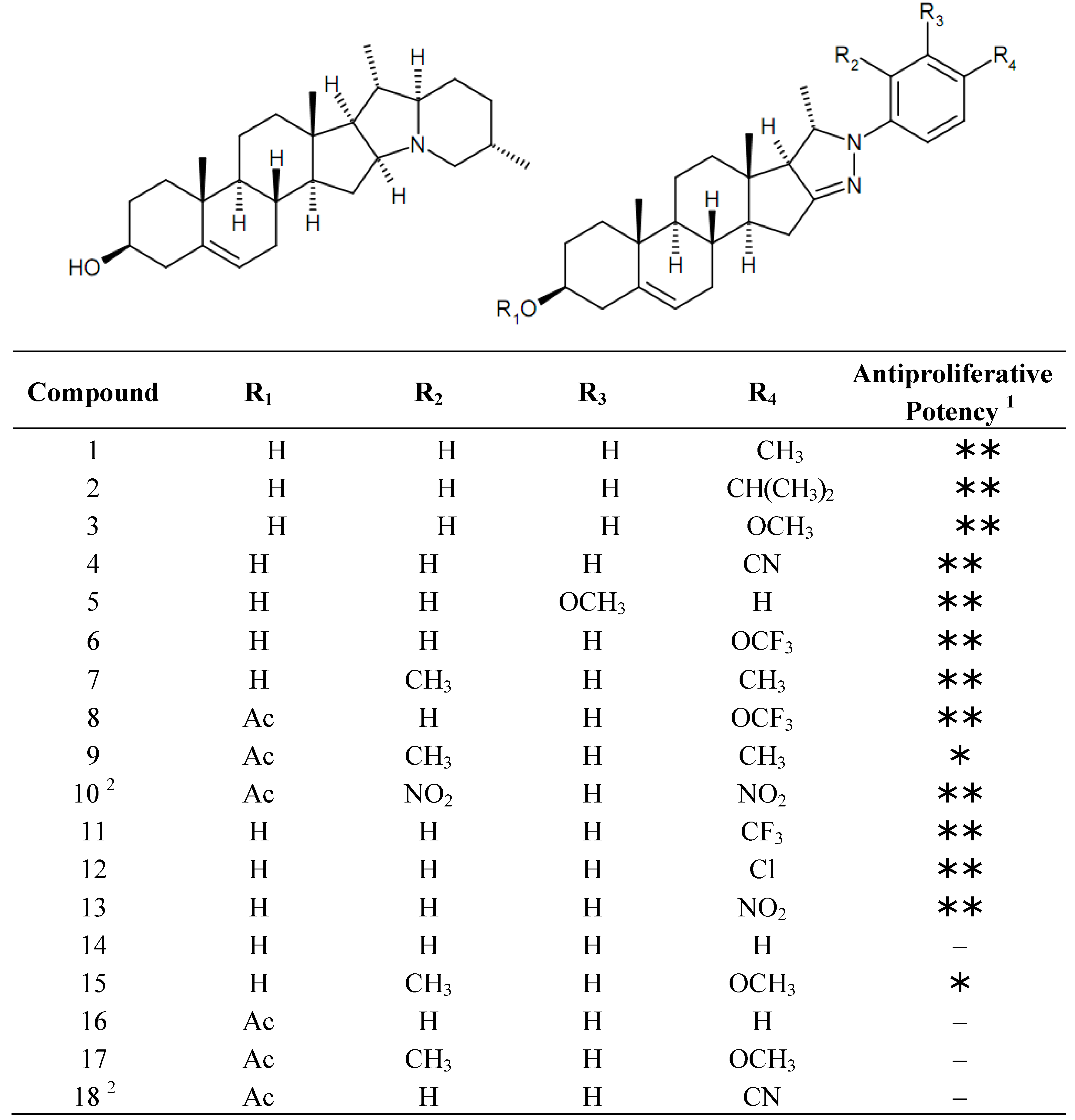 The chemical structures of the currently investigated set of solanidine analogs are presented in Figure 1.