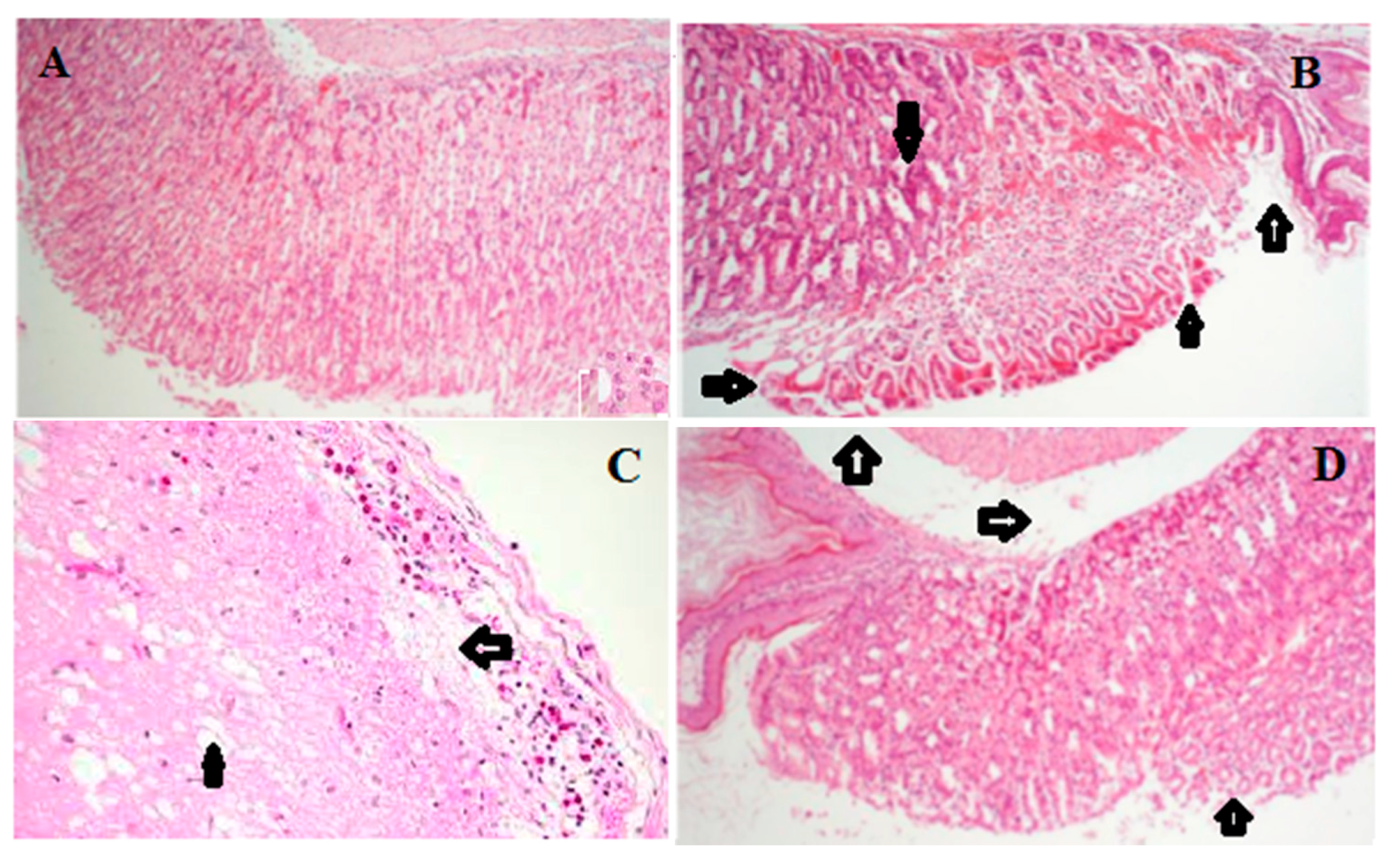 4.3.1. Induction of Gastric Ulcer and Treatment