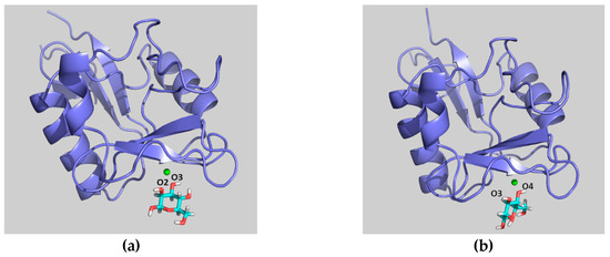 - Kirschner, K.N.; Yongye, A.B.; Tschampel, S.M.; González-Outeiriño, J.; Daniels, C.R.; Foley, B.L.; Woods, R.J. GLYCAM06: A generalizable biomolecular force field. Carbohydrates. J. Comput. Chem. 2008, 29, 622–655. [Google Scholar] [CrossRef] [PubMed]