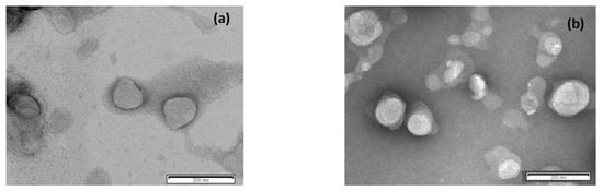 The morphology of blank SLNs and CUR-pSLNs were determined using TEM (Figure 2). TEM images showed that lipid nanoparticles had a spherical appearance having a particle size below 200 nm, as confirmed by DLS data.