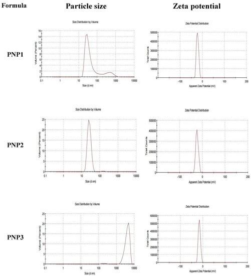 In addition, the PNPs looked smaller when observed with the TEM, in comparison to the measured particle size which may be attributed to PNPs dehydration through preparation of TEM samples [].