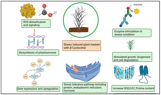 Schematic representation of β-cyclocitral effects on plants under abiotic stress.