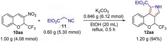 Reaction of 3-nitro-2H-chromenes 10aa with ethyl isocyanoacetate 11.