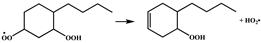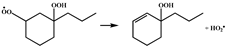 ) calculated in this work is 30.0 kcal mol−1, which is lower than the energy barrier of 32.9 kcal mol−1 for the analogous reaction (CH3CH (OO•)(CH2)2OOH → CH3CH=CHCH2OOH + HO2•) calculated by Sun et al. Goldsmith et al. [28] studied the kinetics of the C3H7O2 and C3H7O4 potential energy surfaces in high–level ab initio calculations, which also included the concerted HO2 elimination reactions of •OOCH2CH2CH2OOH and •OOCH2CH (OOH)CH3. The energy barrier of the reaction R5 (