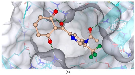The following supporting information can be downloaded at: https://www.mdpi.com/article/10.3390/molecules28062623/s1, Figures S1–S8. The docked complexes of compounds a, b, d, e, and g–h with their best hits.