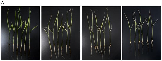 The seeds of rice used in the present test were provided by a farmer from Jiangsu Province, Suzhou City, China. Seeds with complete grains were selected and disinfected with 2% hydrogen peroxide (H2O2) for 10 min. After rinsing with deionized water, they were immersed in deionized water for 5 h. Then, these seeds were germinated in several plastic boxes covered with wet filter paper, and the germinated seeds were grown in a plastic pot (10 per pot) with IRRI nutrient solution [45] for 13 days under greenhouse conditions (14:10 light/dark, 25 ± 2 °C)., Different concentrations of Pcp were applied up to the three-leaf stage: 135 μg/mL (50%LC50) and 67.5 μg/mL (25%LC50). The Pcp was dissolved in DMSO (0.5% v/v). The blank control was a nutrient solution with nothing added and the negative control was a nutrient solution added DMSO (0.5% v/v). The corresponding solution in pots was replaced every 3 days during the test period, which lasted 18 days.
