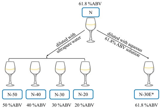 Schematic diagram of Baijiu samples preparation (* N-30E was diluted with aqueous 61.8% ABV solution using the same dilution ratio as N-30).