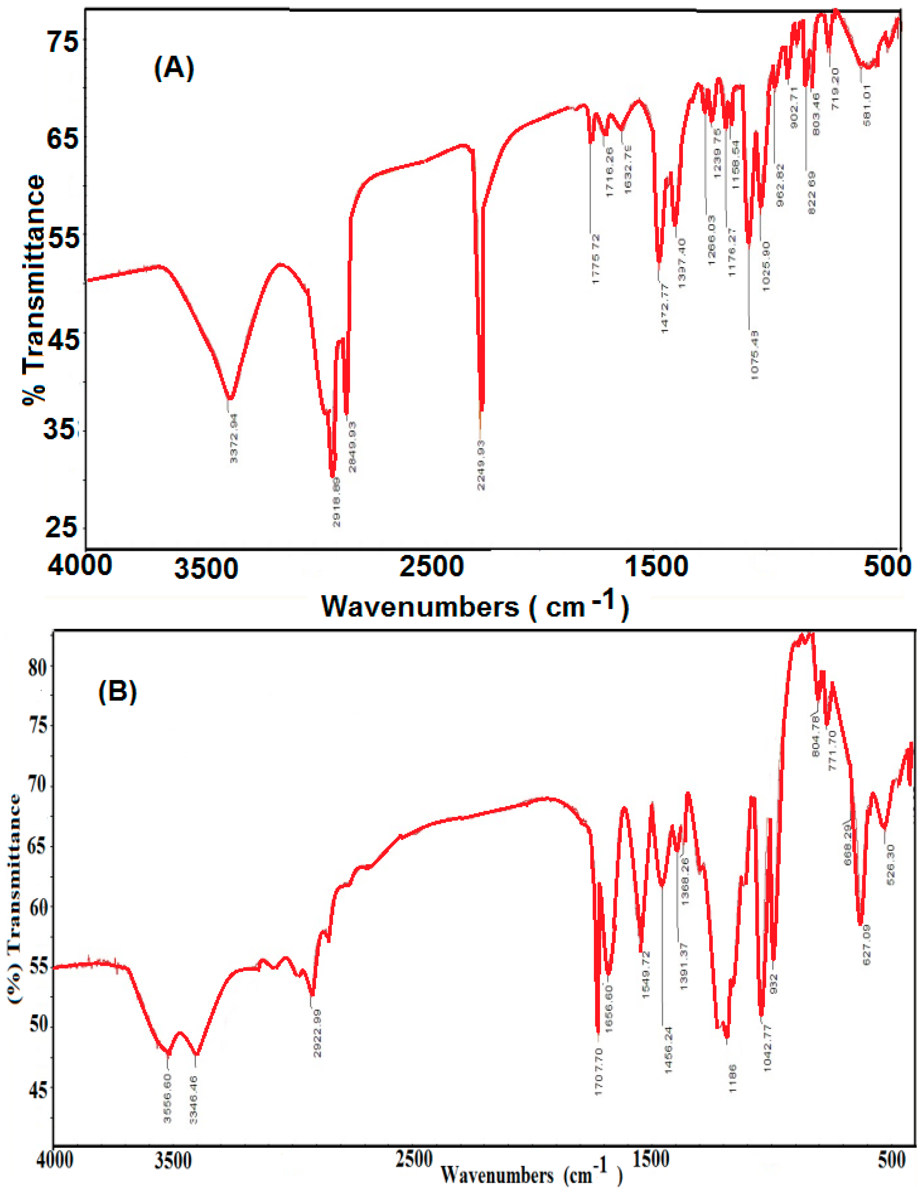 FTIR spectra of (A) R-AN and (B) RK-AN amidoxime derivatives.