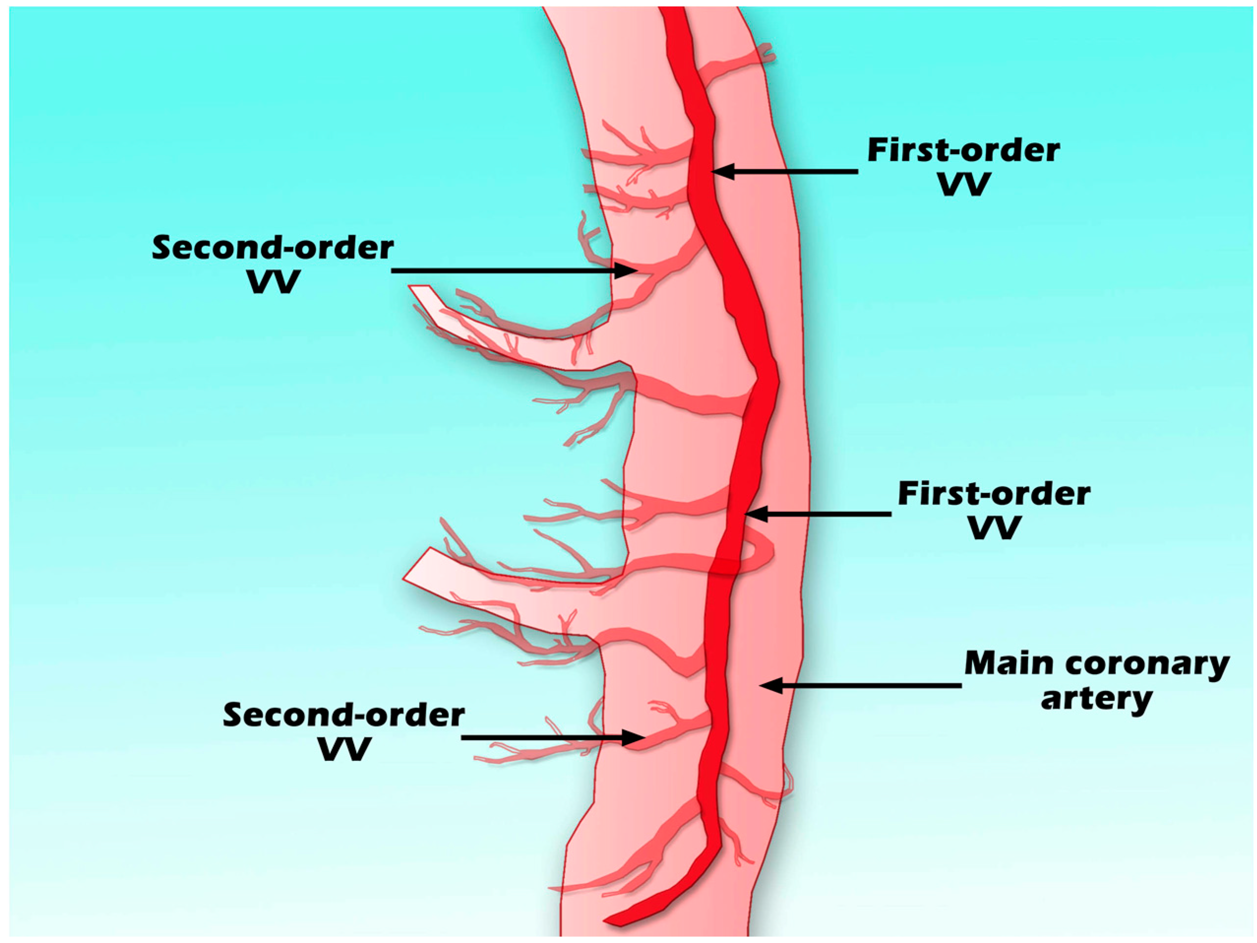 Scheme of first-order VV, second-order VV, and main coronary artery.