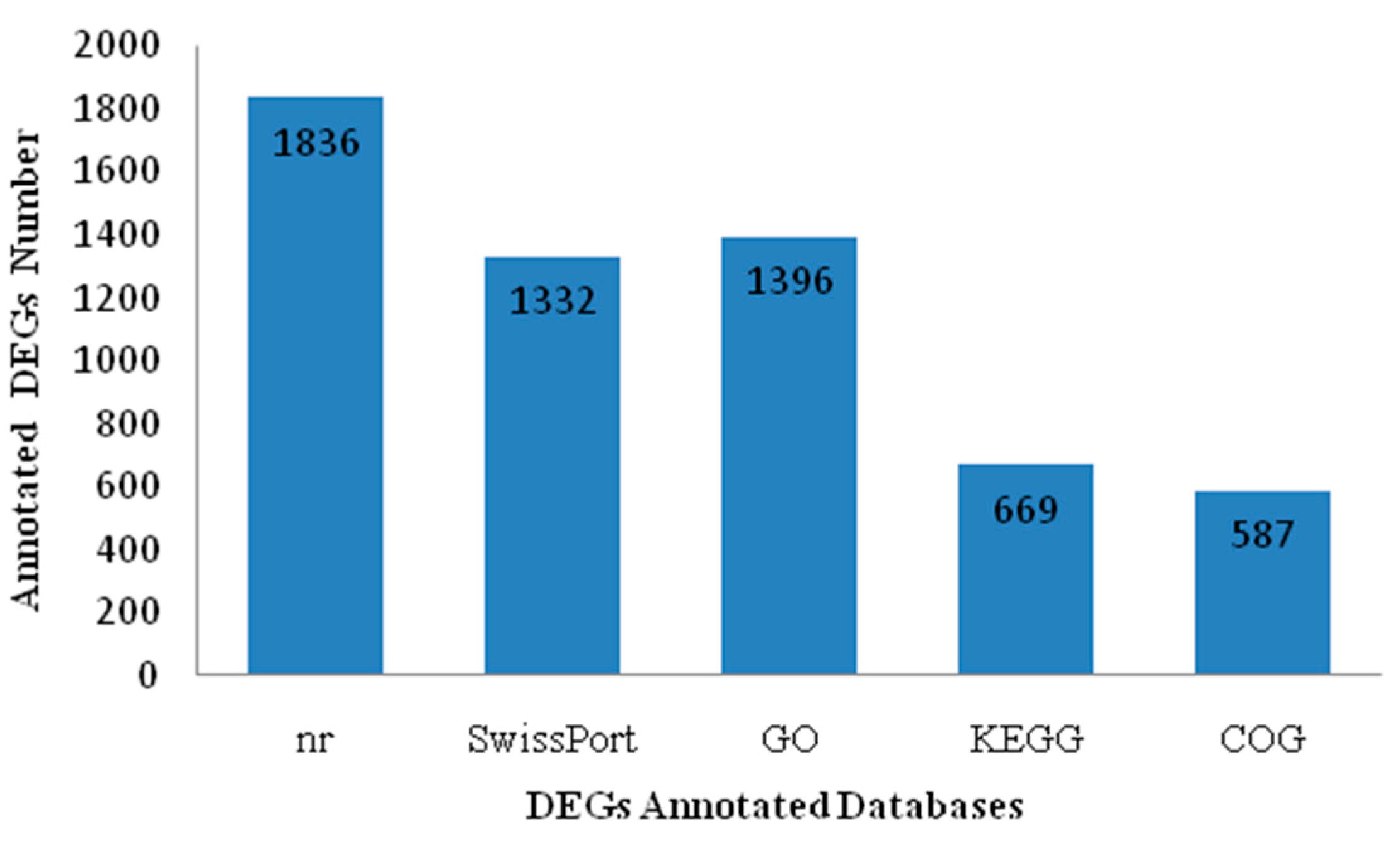 DEGs annotated by five public databases (Nr, SwissPort, GO, KEGG and COG).