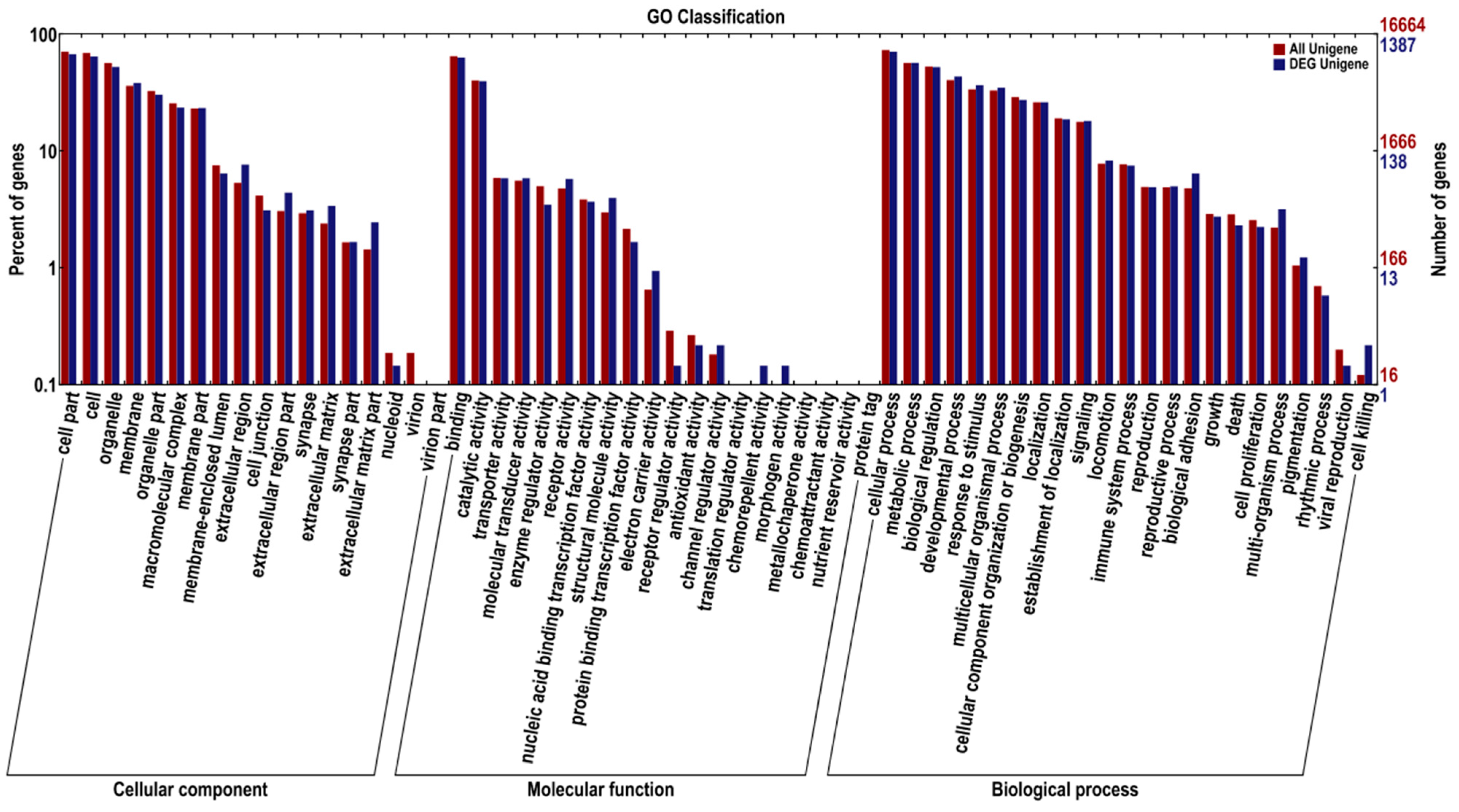 Gene Ontology (GO) classification of the DEGs and all unigenes.