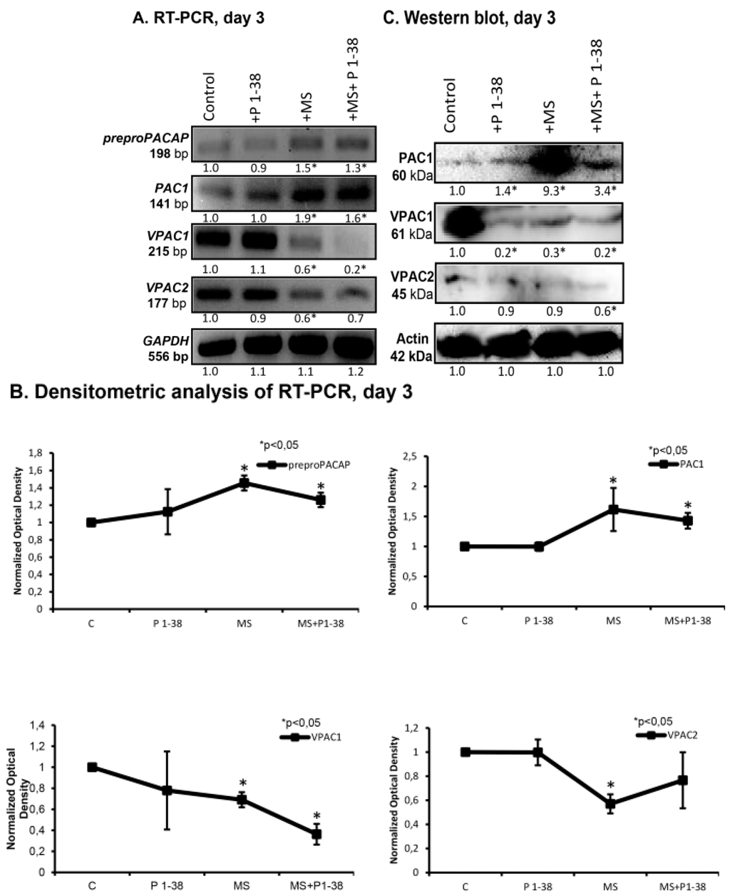 | Anti-PAC1 | rabbit, polyclonal, | 1:600 | Sigma-Aldrich, St. Louis, MO, USA; P8872 |