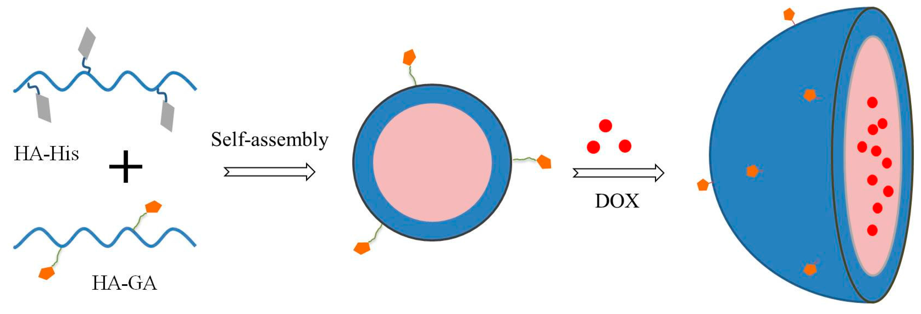 Sodium hyaluronate (Mw: 70 kDa) was purchased from Shandong Freda Biopharm Co., Ltd. (Ji’nan, China). GA (purity >98% by HPLC) was purchased from Fujie Pharmaceutical Co., Ltd. (Xi’an, China). His was purchased from Sinopharm Chemical Reagent Co., Ltd (Shanghai, China). DOX·HCl was purchased from ShanXi powerdone Pharmaceutical Co., Ltd (Xi’an, China). FITC was purchased from Huasheng Co., Ltd (Zhejiang, China). EDC, NHS, and DMT–MM were purchased from Shanghai Medpep Co., Ltd., (Shanghai, China) and pyrene was purchased from Sigma (St. Louis, MO, USA). All other chemicals were analytical grade.