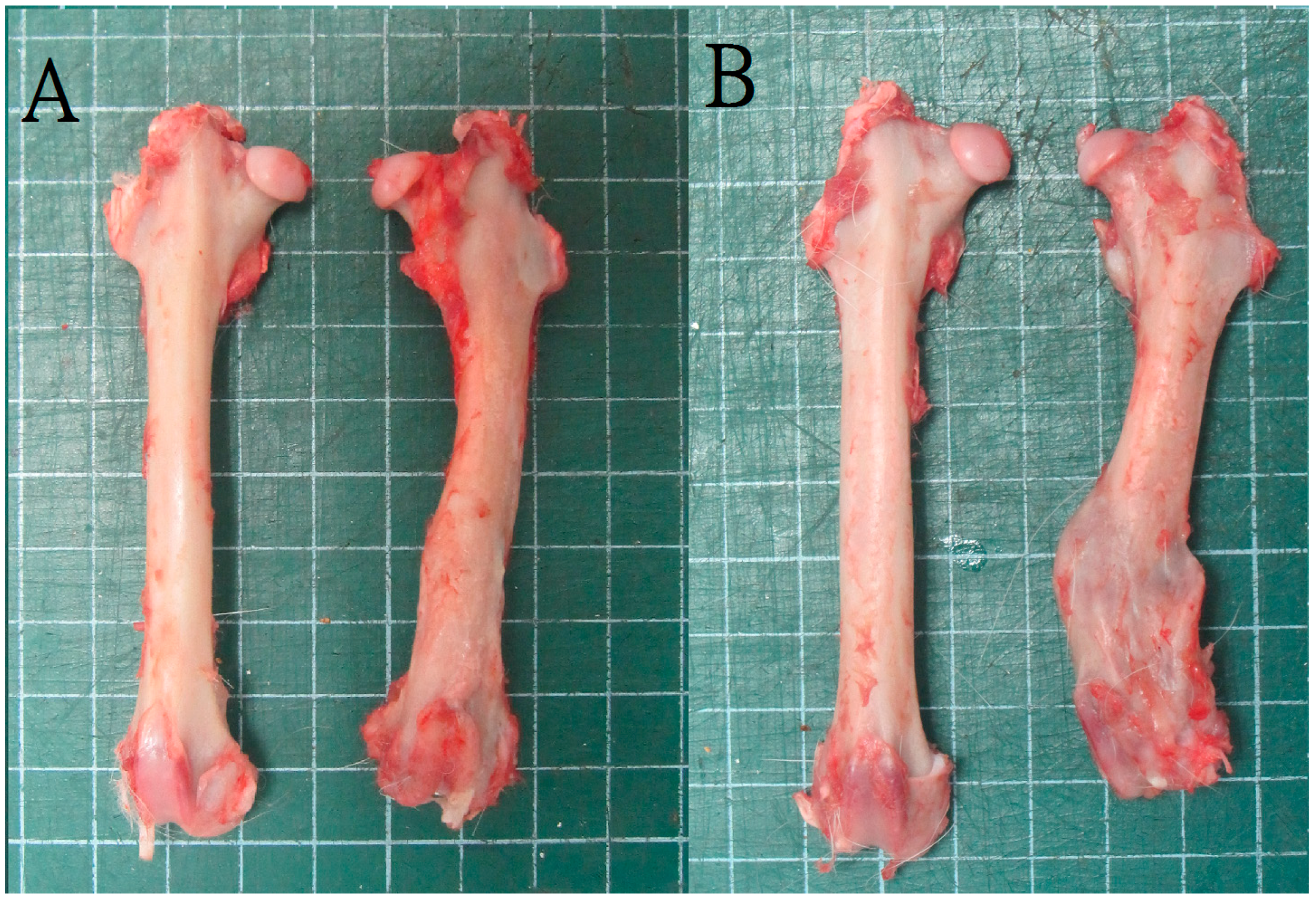 2.2. Radiographic and Histological Examination of Bone Healing