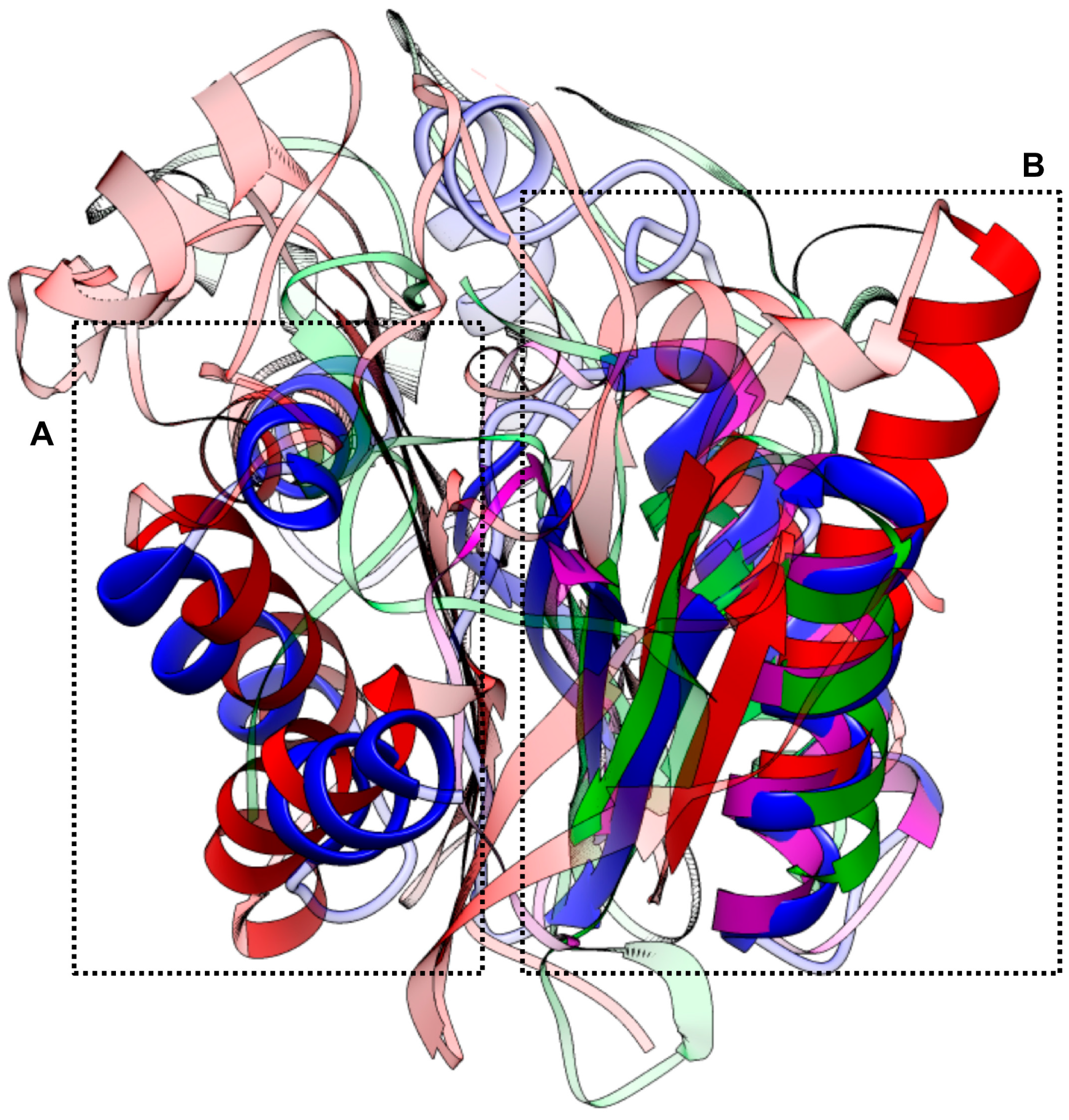 - Holm, L.; Rosenstrom, P. Dali server: Conservation mapping in 3D. Nucleic Acids Res. 2010, 38, W545–W549. [Google Scholar] [CrossRef] [PubMed]
