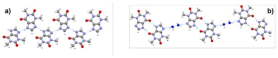 Tautomeric polymorphism may occur due to the crystallization of different tautomers. A textbook example is provided by barbituric acid. The keto form, used in all common representations of this important chemical, is the preferred tautomer in solution; it is also found in two polymorphs and one hydrated form. The stable thermodynamic form, however, as shown by both solid-state NMR and X-ray diffraction [35,36], turned out to be the enol form IV, obtained by the grinding of commercial barbituric acid, or via extremely slow solid-state conversion upon storage at ambient conditions. See Figure 9 for a view of the packing of form IV.