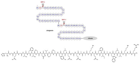 - Rendell, M.S. Albiglutide: A unique GLP-1 receptor agonist. Expert Opin. Biol. Ther. 2016, 16, 1557–1569. [Google Scholar] [CrossRef]