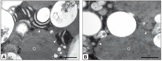 Cell cultures, as well as pAVL and hAVL samples, were fixed with phosphate-buffered 4% paraformaldehyde, dehydrated with graded ethanol solutions, and embedded into LR-white resin. Following this, ultrathin sections were incubated with: (i) 5% normal serum for 30 min; (ii) 1:200 mouse anti-rRNA primary antibody (Santa Cruz Biotechnology, Dallas, TX, USA) overnight at +4 °C; and (iii) 1:15 anti-mouse gold-conjugated secondary antibody (Jackson Immunoresearch, Ely, UK) for 60 min at room temperature. As control, primary antibody was replaced with normal serum. After weak contrasting with uranyl acetate and lead citrate, observations and image recording were undertaken using the Philips CM12 STEM electron microscope as above.