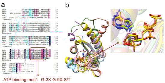 The crystalline small molecules containing ATP or ATP analogues (AMP, ANP, etc.) were selected for sequence comparison and structure superposition, and the results are shown in Figure 2.