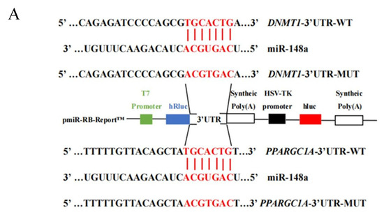 2.6. miR-148a Targets DNMT1 and PPARGC1A