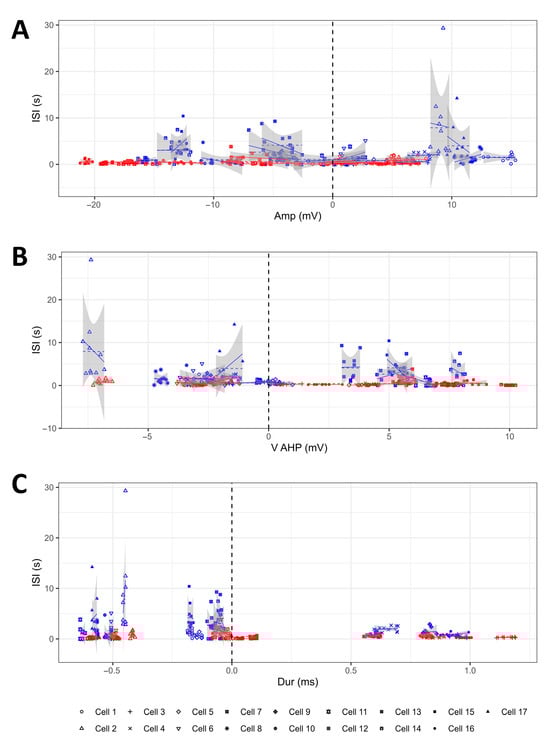 LMMs confirmed a significant effect of TGOT on Vthr, Amp, VAHP, dV/dtmax, dV/dtmin, Dur, and ISI.