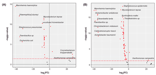 We mapped the above sequencing data to bacterial sequences using the software Pathoscope 2.0 [55]. The bacterial sequences were sourced from the NCBI Nucleotide Database (https://www.ncbi.nlm.nih.gov/nucleotide/) (accessed on 2 August 2023). This software attempts to map sequencing reads to a reference of human sequences. The software excludes these reads and then attempts to map the remaining reads to a reference of bacterial sequences.