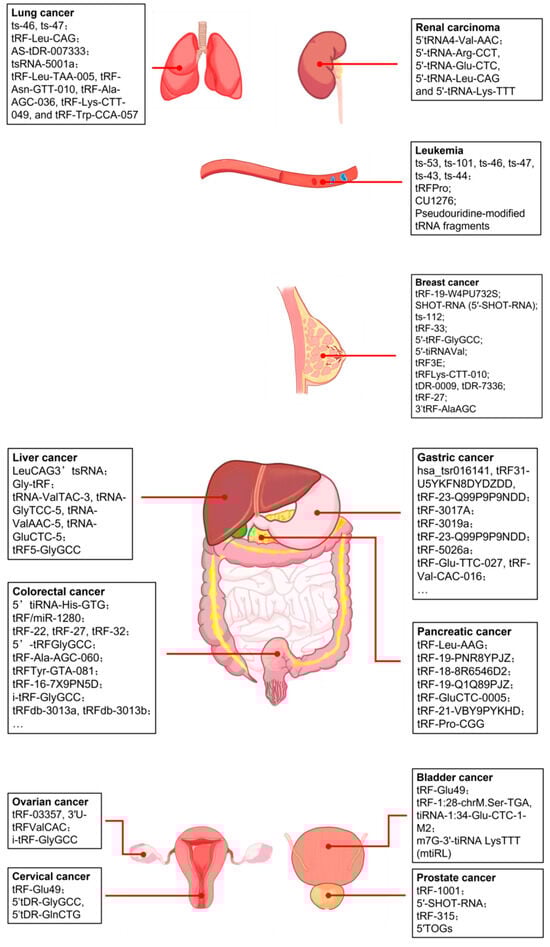 tRFs have also been reported in other cancers, including ovarian cancer, cervical cancer, bladder cancer, and renal cancer.