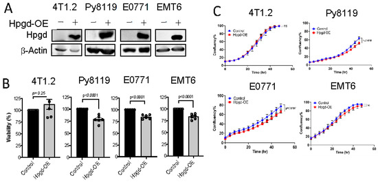 2.2. Hpgd Decreases Proliferation of Murine TNBC Cells
