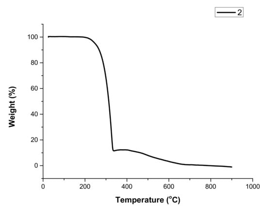 The thermal property of the new benzimidazole derivatives was determined by thermogravimetric analysis (TGA). The TGA plots are shown in Figure 3. Compound 2 showed a high decomposition temperature (Td) at 245 °C.