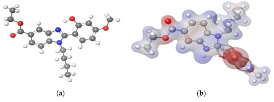 (a) Optimized structure of 2; (b) molecular electrostatic potential (MEP) of compound 2.
