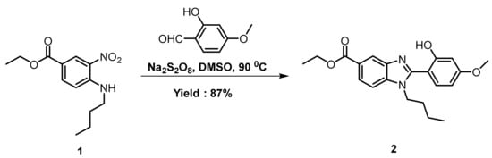 Synthesis of ethyl 1-butyl-2-(2-hydroxy-4-methoxyphenyl)-1H-benzo[d]imidazole-5-carboxylate (2).