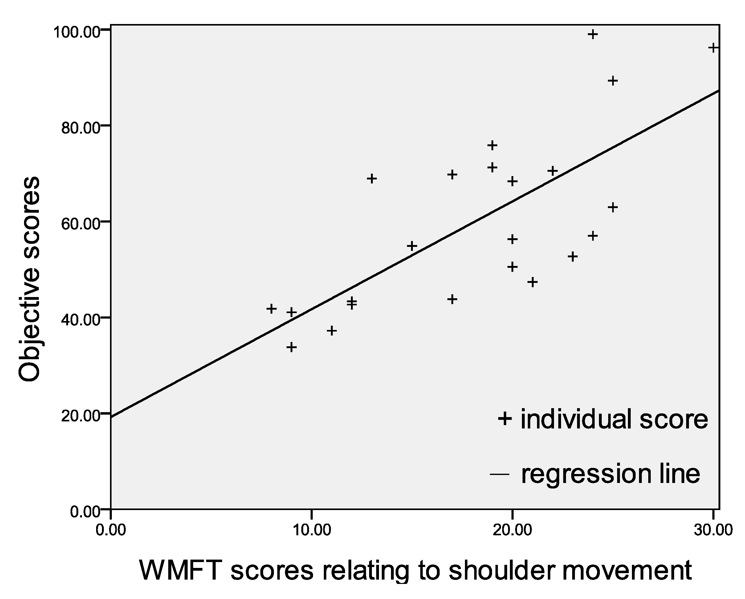 Linear regression between objective scores and WMFT scores relating to shoulder flexion.