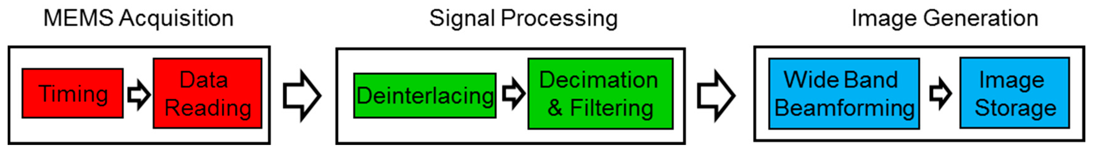 - Turqueti, M.; Saniie, Y.; Oruklu, E. Scalable Acoustic Imaging Platform Using MEMS Array. In Proceedings of the 2010 IEEE International Conference on Electro/Information Technology (EIT), Normal, IL, USA, 20–22 May 2010; pp. 1–4.