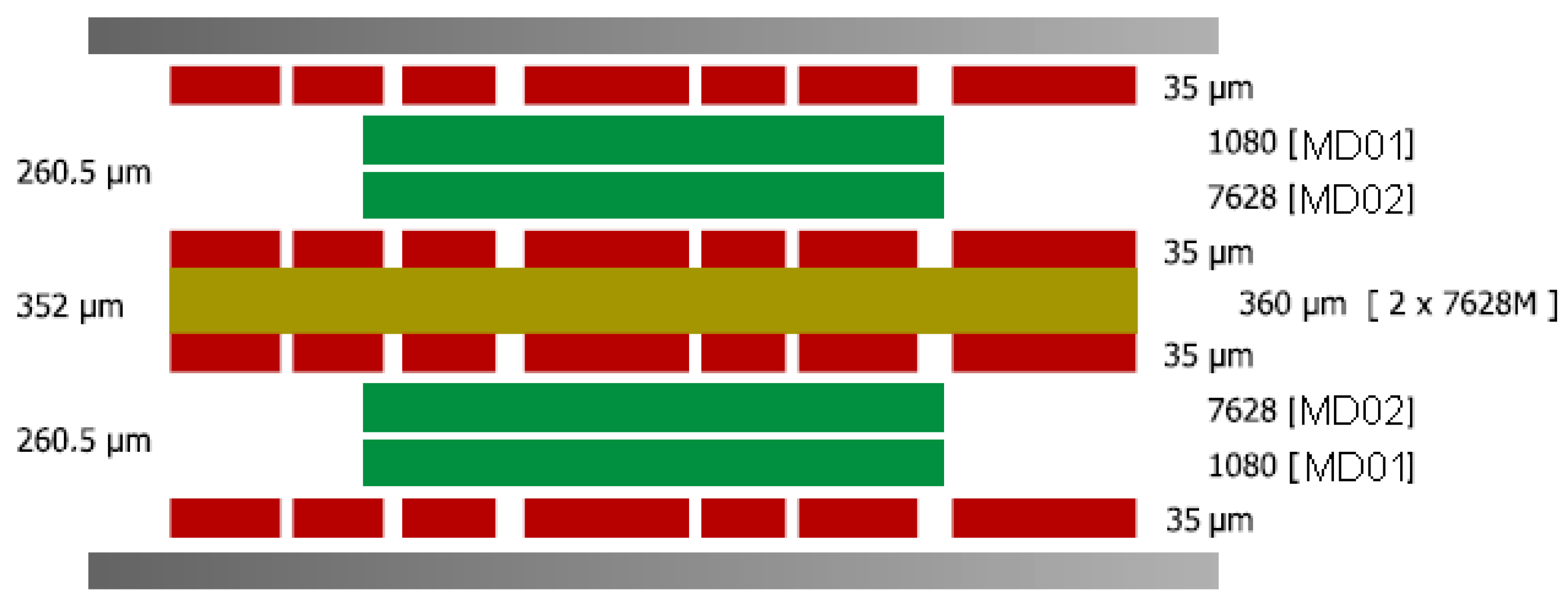 The stack-up layers definition was made according to IPC-4562 and based on the material proprieties, as presented in Figure 7.