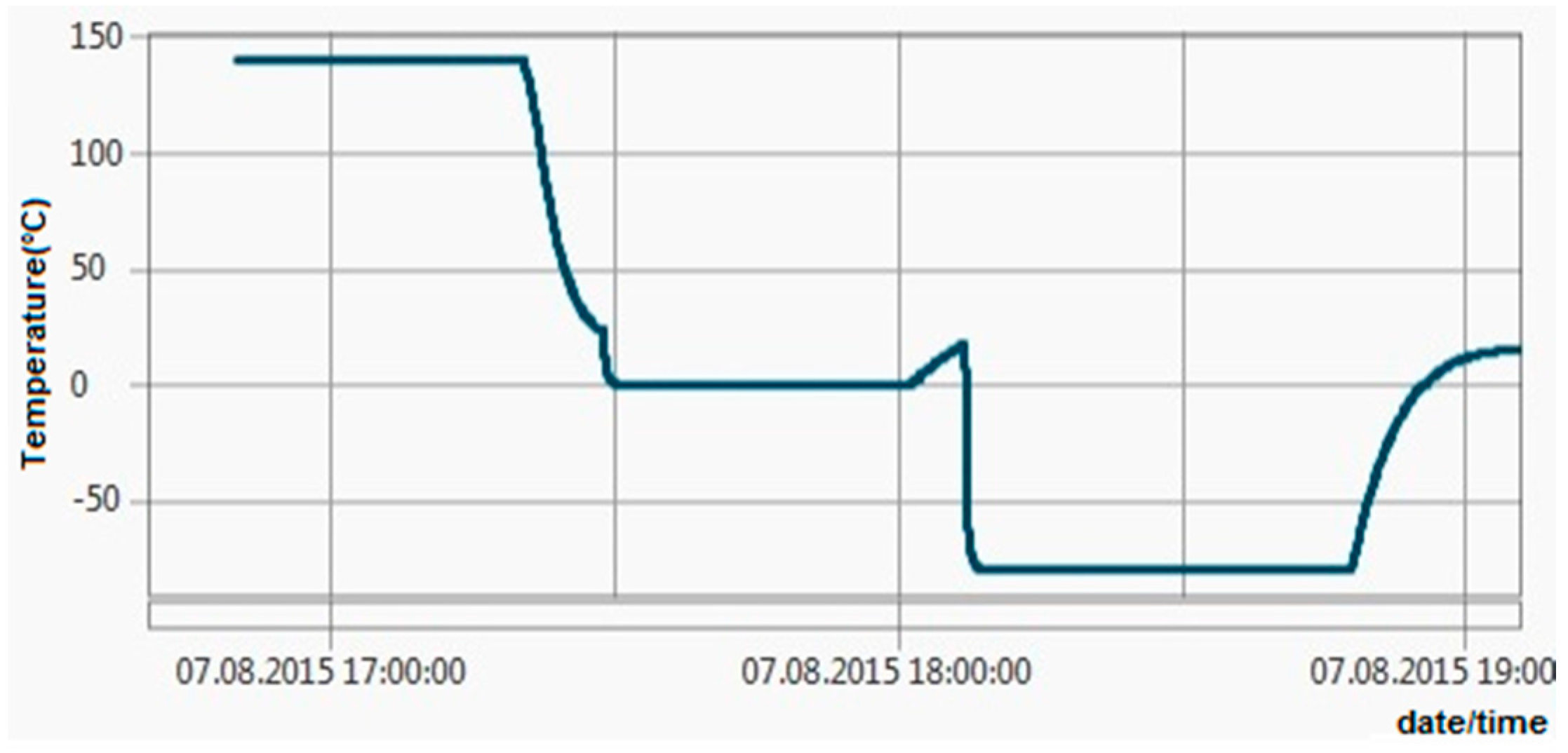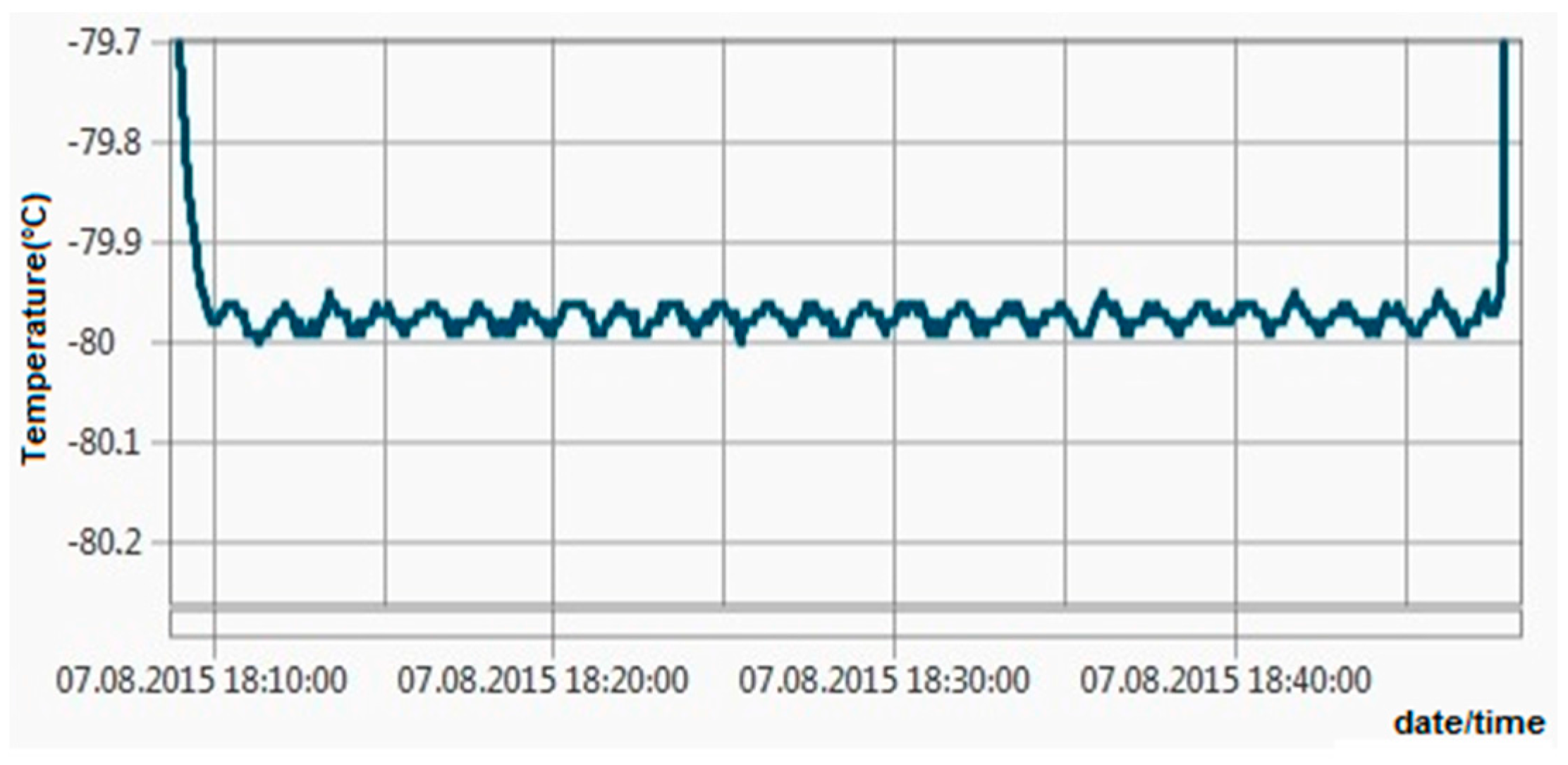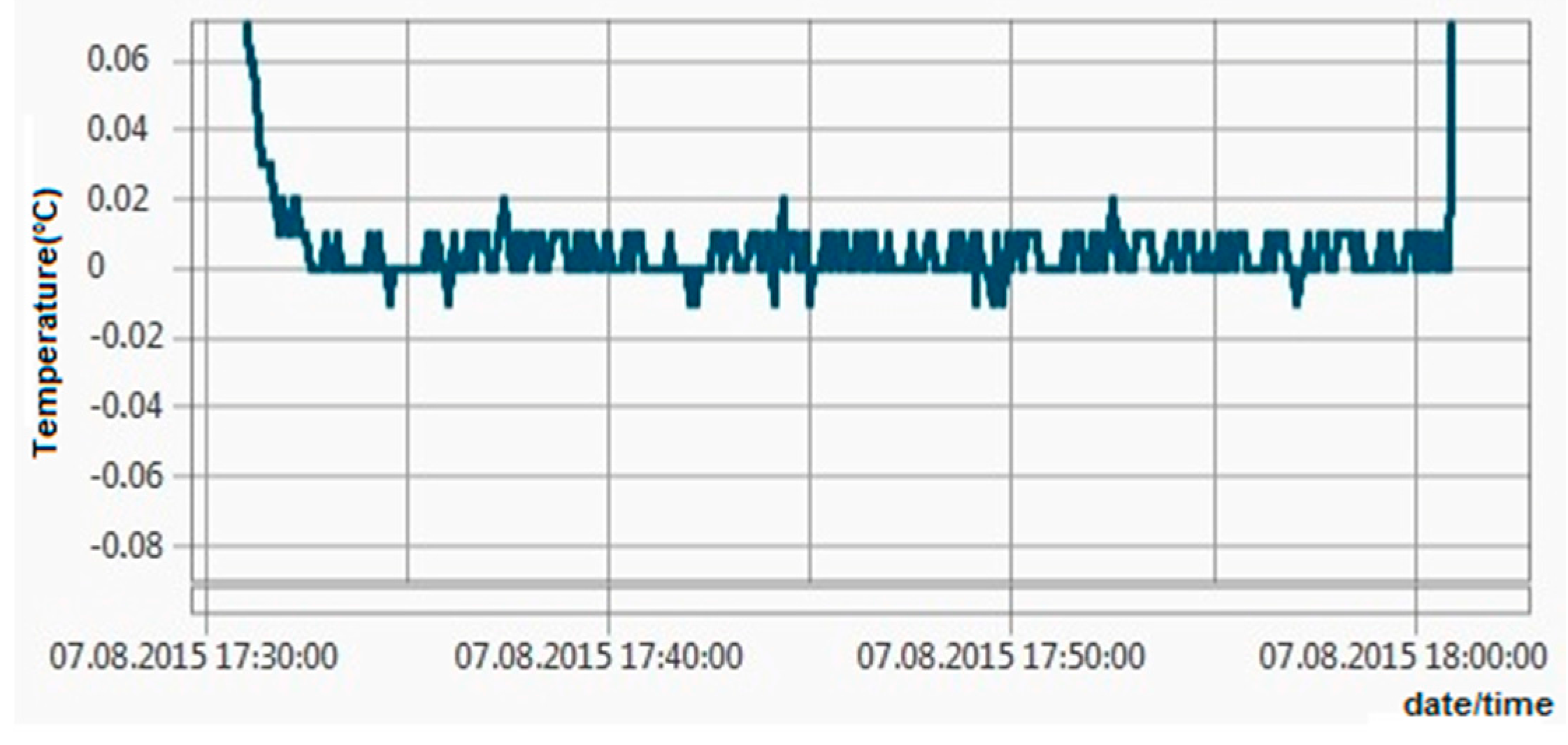 The tests results obtained in the temperature calibrator were also confirmed during on site exploitation (i.e., merchandise shipment, see Figure 16).