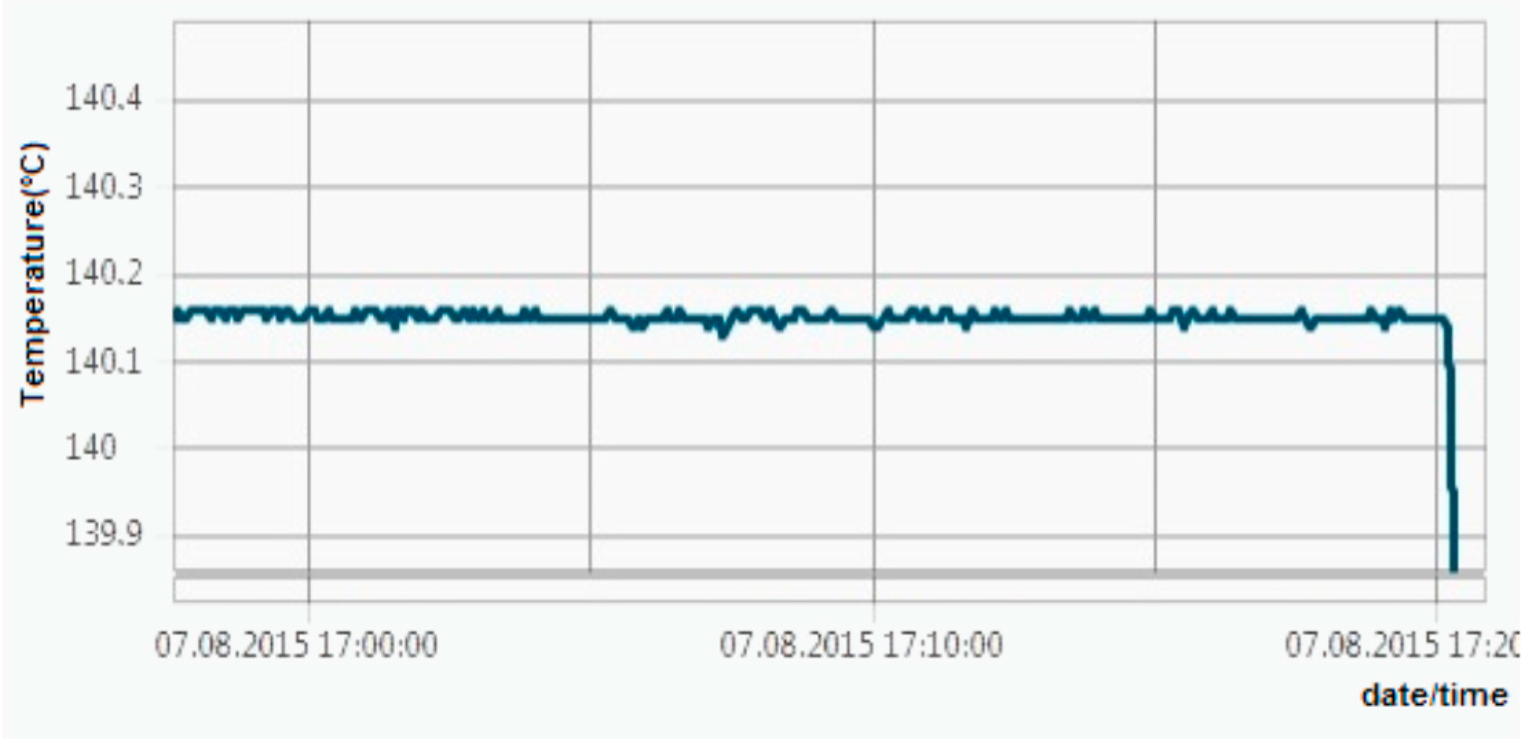 The next step was to take a measurement cycle for 23 °C and raise the temperature during the cycle in order to test the response time. Further, the stability was tested at 23 °C and again at 120 °C.