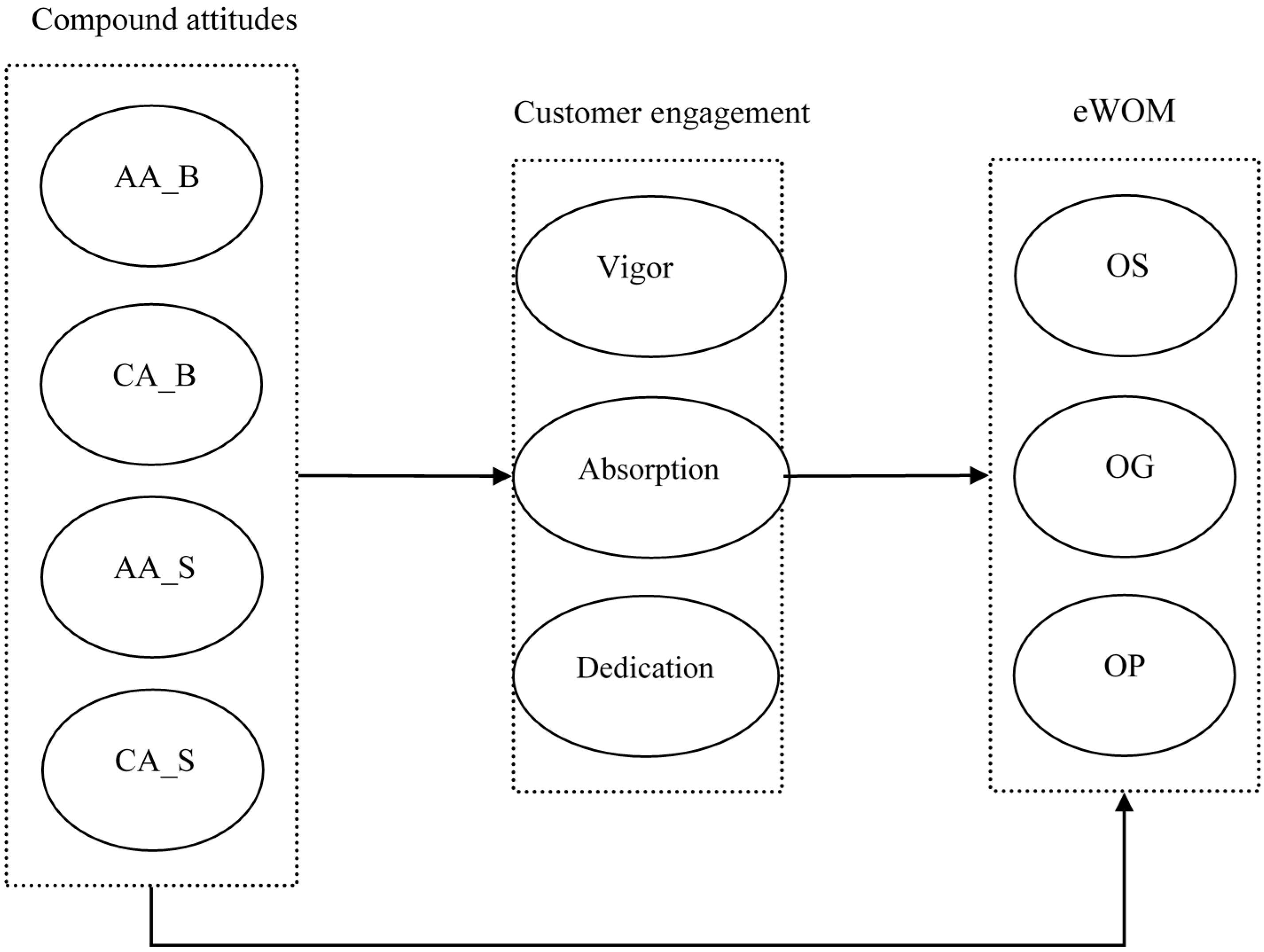 - H12. Customer engagement mediates the relationship between compound attitudes and eWOM behavior