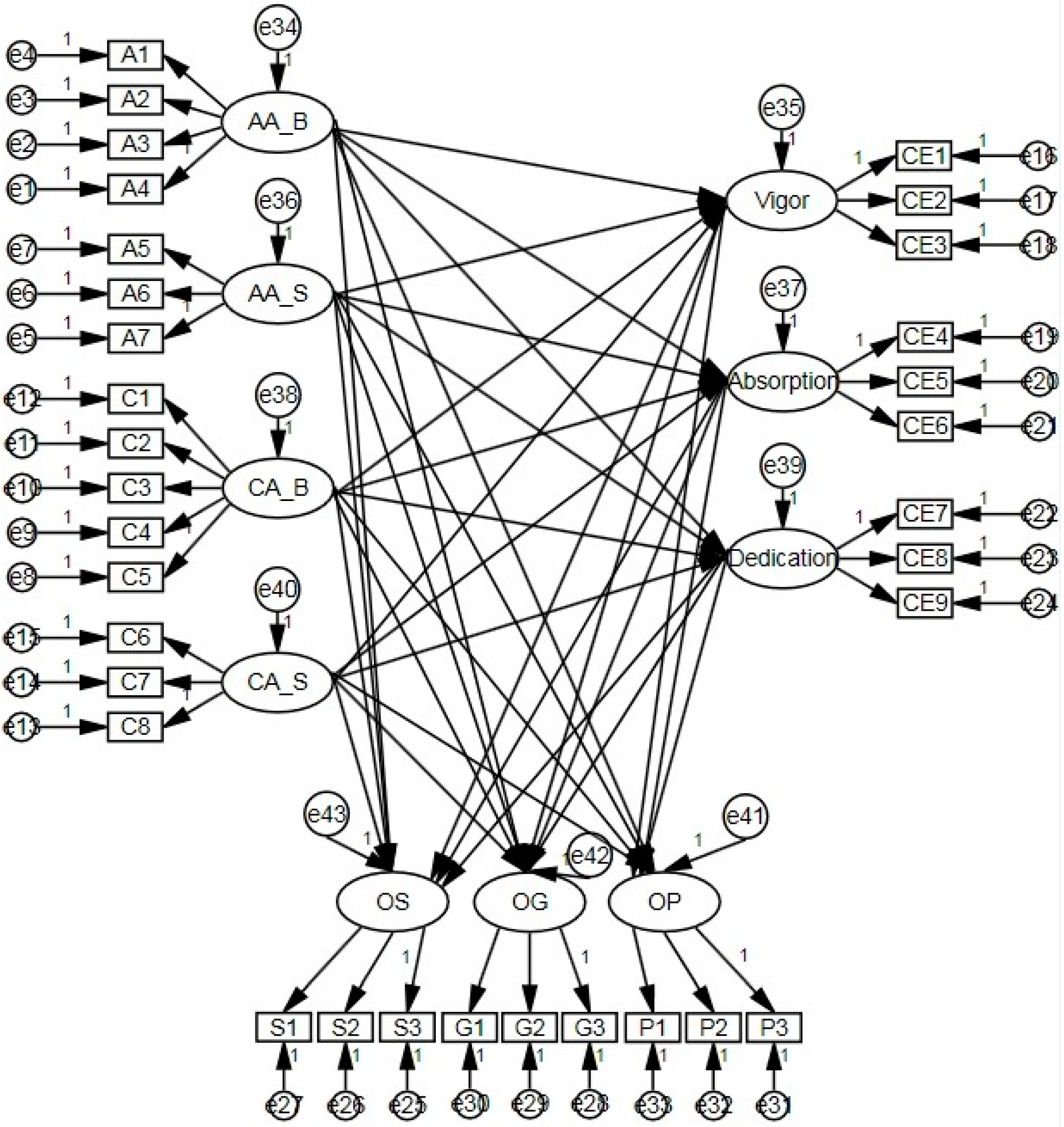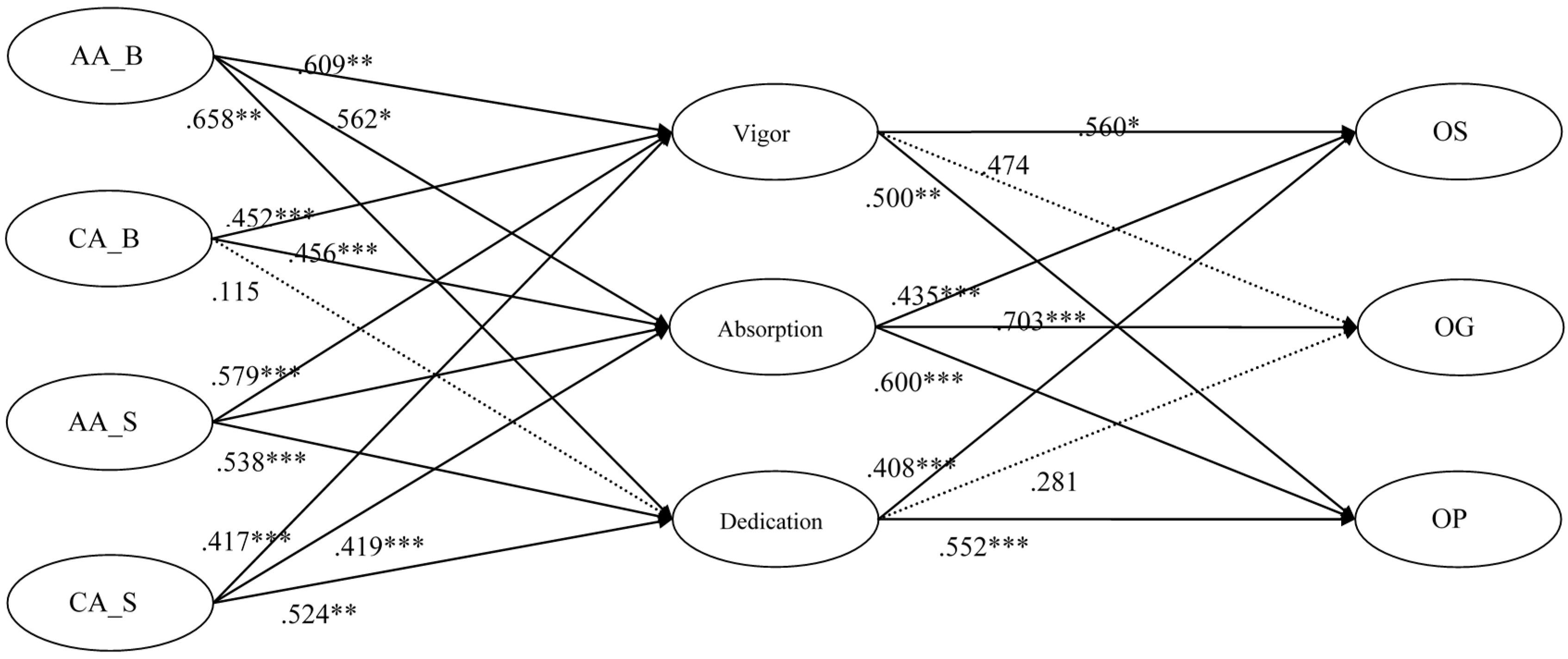 The parameter estimate statistics of our research model are presented in Table 10. H1a, H1b, and H1c assumed that brand (product) related affective attitudes directly and positively influences vigor, absorption, and dedication, respectively. The paths from brand (product) related affective attitudes to vigor, absorption and dedication were positive and statistically significant (standardized β = 0.209, p < 0.01; standardized β = 0.162, p < 0.05; standardized β = 0.258, p < 0.01; respectively). Thus, H1a, H1b, and H1c were supported by the data.