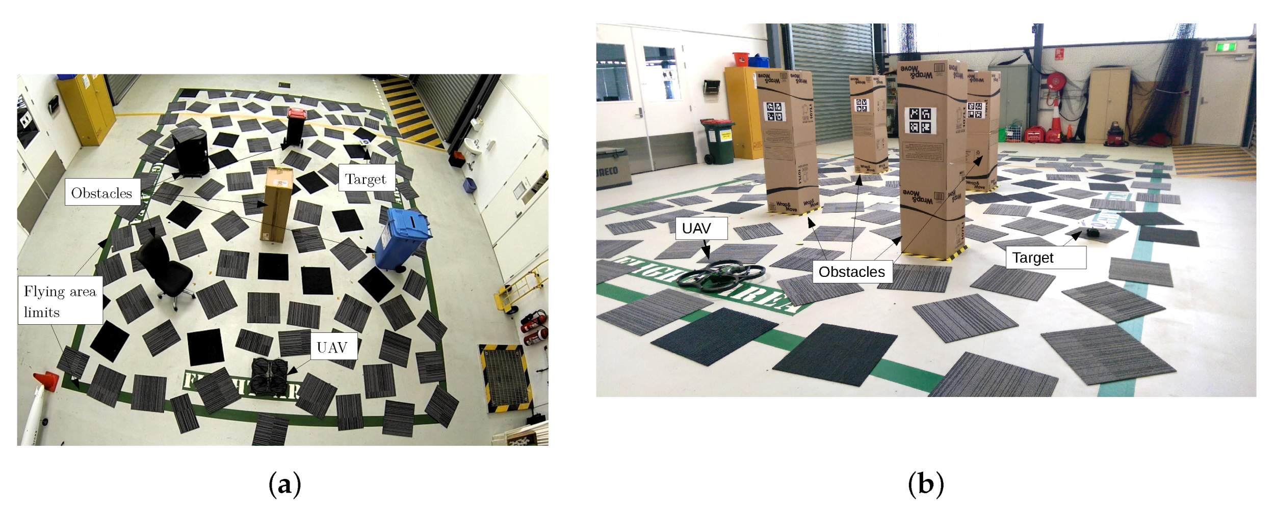 - Dadkhah, N.; Mettler, B. Survey of Motion Planning Literature in the Presence of Uncertainty: Considerations for UAV Guidance. J. Intell. Robot. Syst. 2012, 65, 233–246. [Google Scholar] [CrossRef]